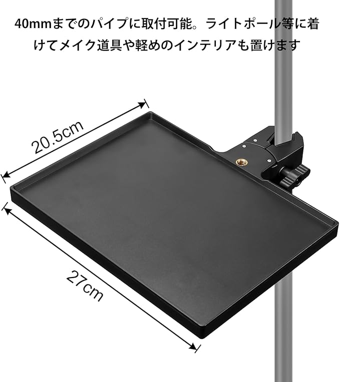 【頑丈な構造】このマイクスタンドトレイは、ポール直径13~47mm ほとんどのマイクスタンドにしっかりと取り付けられる硬質ABSカニクランプを備えています。 ほとんどのマイクスタンド/楽譜スタンド/スピーカースタンド/自撮りライトスタンド/電話三脚用。