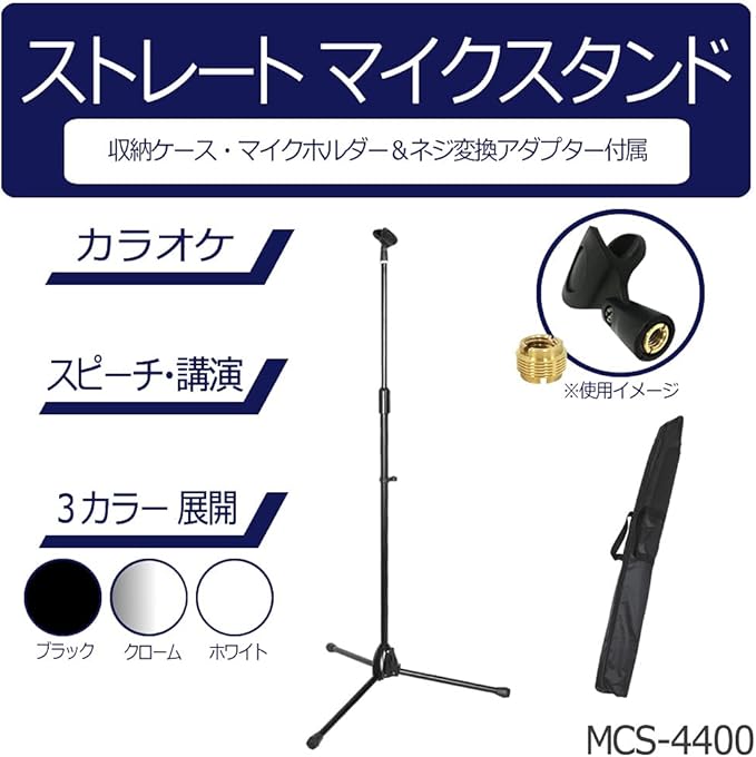 KC(ケーシー) マイクスタンド ストレート MCS-4400/WH ホワイト (ソフトケース、マイクホルダー付)