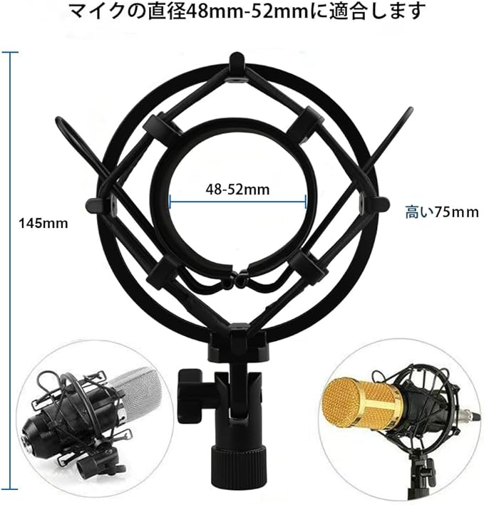 「対応マイク」マイクの直径48mm-52mmに適合します。ご購入する際、しっかり確認してください。
