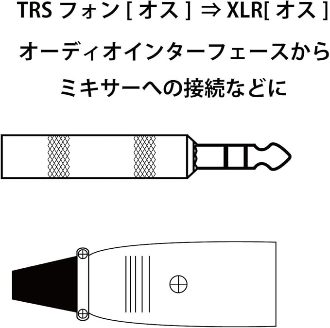 コンパクトなオーディオインターフェースや出力数の多い機種のアウトプットにTRSフォーンジャックを採用しているモデルから、XLRオスでミキサーやアンプ内蔵スピーカーなどに入力する際に便利にご使用いただけるケーブルです。