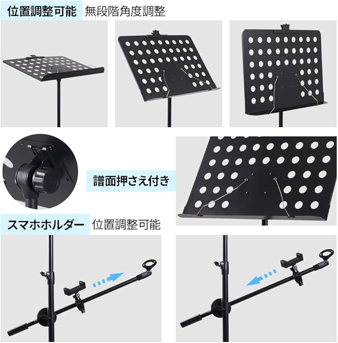 ■譜面台「無段階角度調整」■高さ調整可能■譜面押さえ付き■底部滑り止め付き