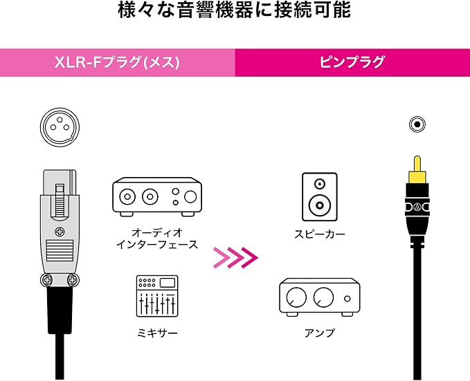 音質と使いやすさを両立したオーディオケーブル。XLR-Fプラグ−ピンプラグ