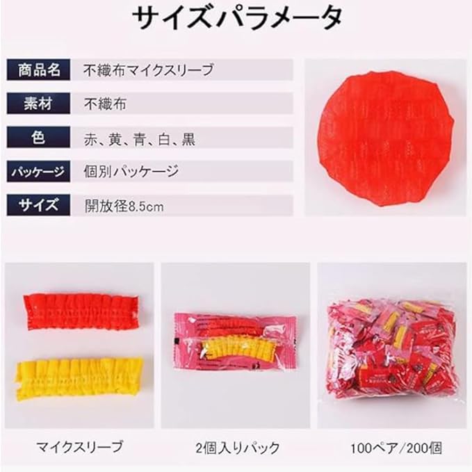 マイクカバー 使い捨て 200個入り 不織布 抗菌 個包装 多色 ノイズ防止 防風 防塵 防飛沫 雑音防止 カラオケ用 講演 会議用 (5色)