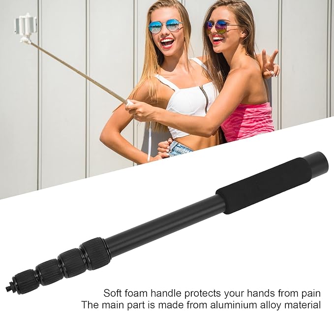 マイクブームアーム、アルミニウム合金ハンドヘルドマイクエクステンションアーム、ソフトフォームハンドル付きポータブル高耐久性マイクブームポール(5セクション)