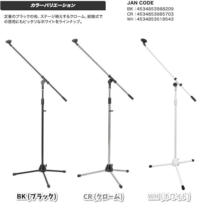 折畳可能なブームタイプマイクスタンド/高さや角度は調節が可能