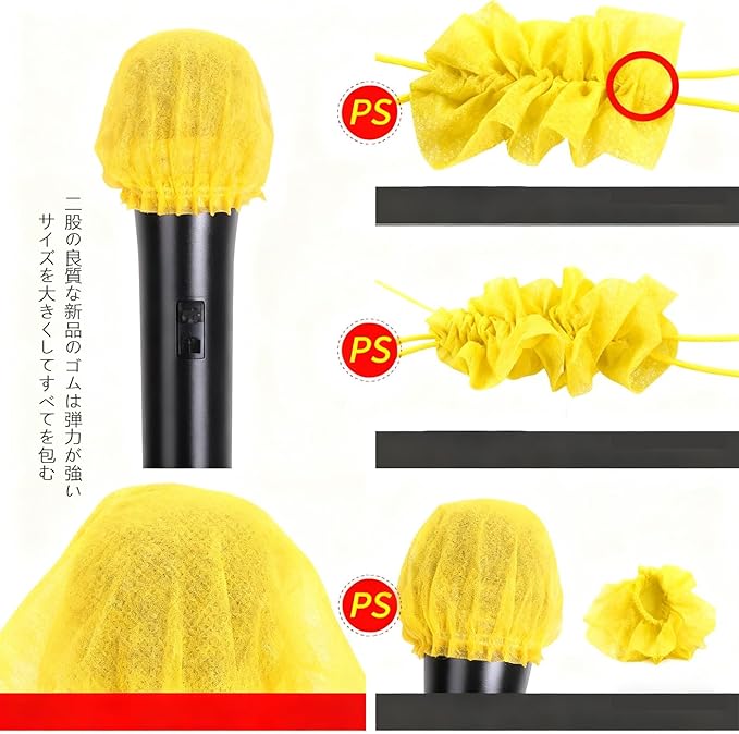 使い捨てマイクカバー 200個入り 抗菌/防塵/飛沫防止 ノイズ低減 不織布製 ボール形状 5色ミックス カラオケ/講演/イベント用