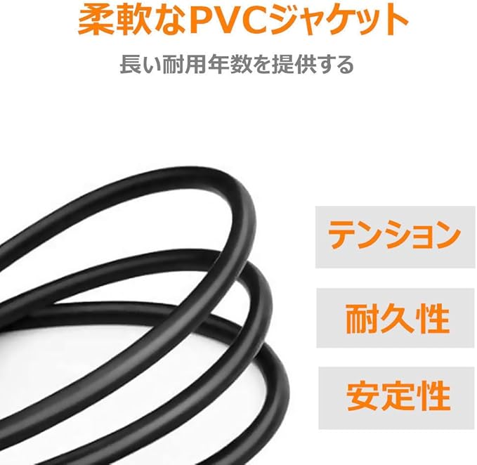 xlr rca 変換 : PVCを採用します。柔軟性、安全性、耐候性(-40 C to 90 C)、リサイクル性。高品質なPVCにより形が崩れにくい、折り曲げに強い、回復力は非常に良いです。張力強度も高い、劣化しづらい。電気的ノイズの信号と干渉する電磁放射を低減します。効果的に接地でき、電気ノイズを隔離します。軽量で、完全なシールドカバを提供します。データを保護し、EMIやRFI の放射から守る rca xlr ケーブル
