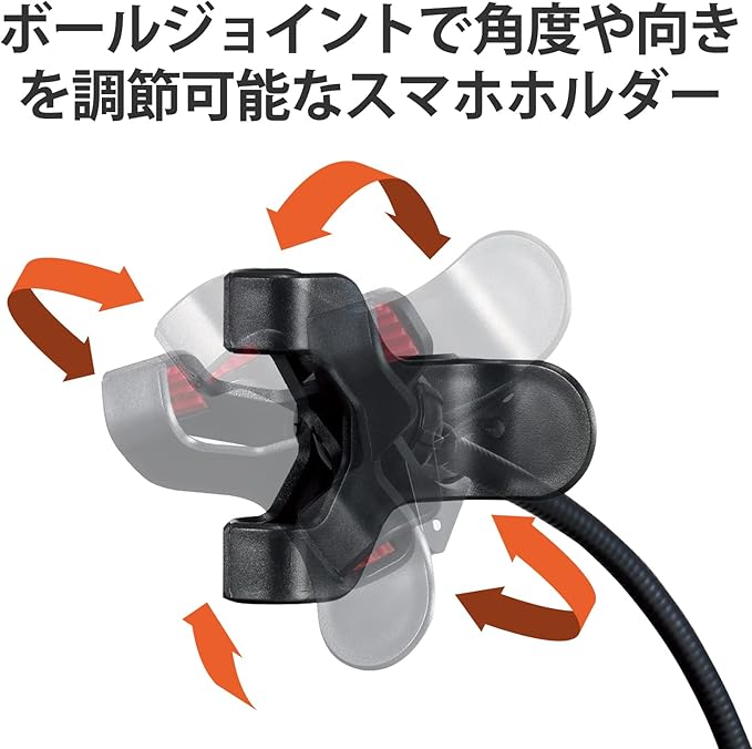 ■スマホホルダー部分にはボールジョイントを採用しているので、角度や向きを自由に調節できます。