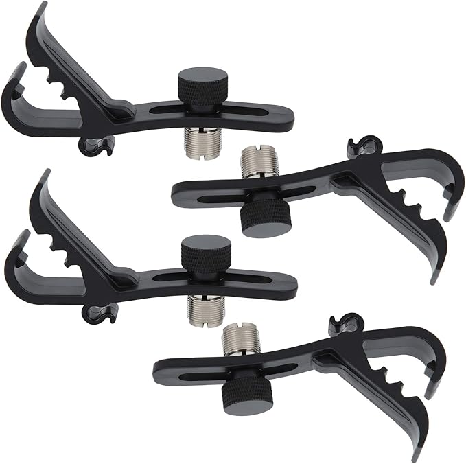4個セット ドラム用マイククリップ 耐震型 クランプ ホルダー 3点溝設計 高さ調整可能 各種ドラム対応 (スネア/タム/バス) 簡単取り付け 楽器用アクセサリー 金属+ABS製 黒 (ネジ付き)