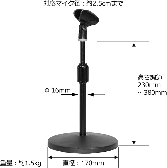 ■高さ:最低23cmから最高38cmまで調節可能。 ※マイクホルダー付属(約直径2.5cmまでのマイクに使用可)