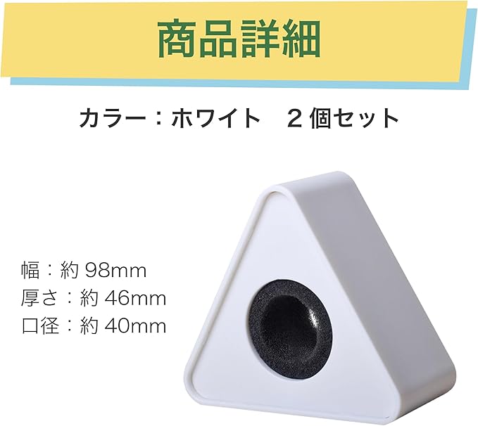 セット内容:2個セット 幅:約98mm 厚さ:約46mm 口径:約40mm カラー:ホワイト ※モニターの環境等により、色の見え方に若干差が生じる場合がございます。