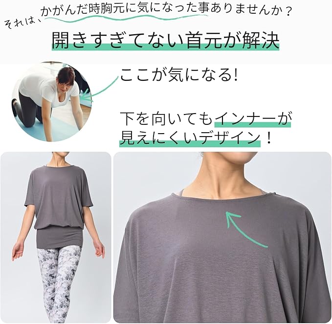 [machikaada] ヨガウェア レディース トップス 体型カバー 丈長 長め ロング丈 おしゃれ かわいい ヨガ フィットネス ピラティス ホットヨガ ドルマンスリーブ ドルマン袖 | peaceFull store