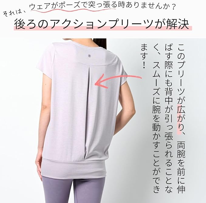 [machikaada] ヨガウェア トップス Tシャツ 体型カバー 半袖 ロング丈 着丈長い ヨガ ホットヨガ ピラティス フィットネスウェア フレンチスリーブ かわいい おしゃれ | peaceFull store