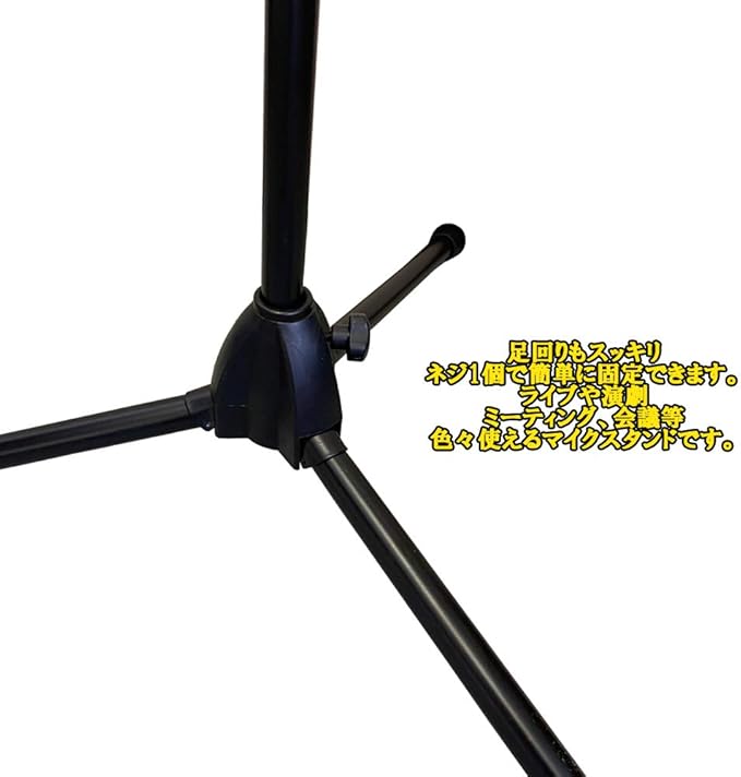 ライブや弾き語りなどに使われるブームマイクスタンド。安定性のある脚部、容易な高さ調整、マイクホルダー(付属)の角度調整など、使いやすさ重視のスタンドになっております