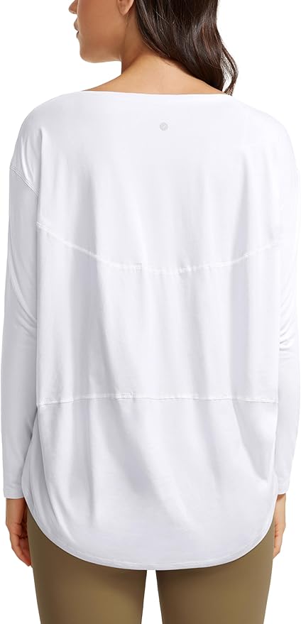 [CRZ YOGA] カットソー レディース 長袖 tシャツ ピマコットン ボートネック ベーシック ゆったり カジュアル ヨガウェア トップス 長袖 春 秋