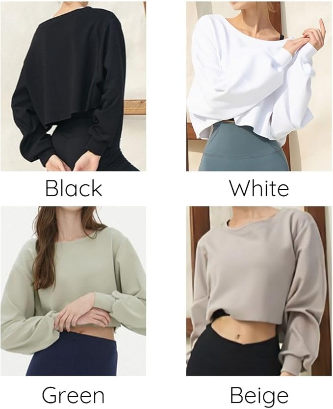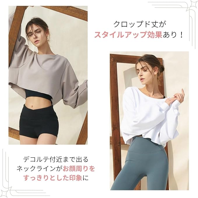 [VeroMan] ヨガウェア 長袖 ショート丈 クロップド レディース ゆったり トップス ppi-lse034
