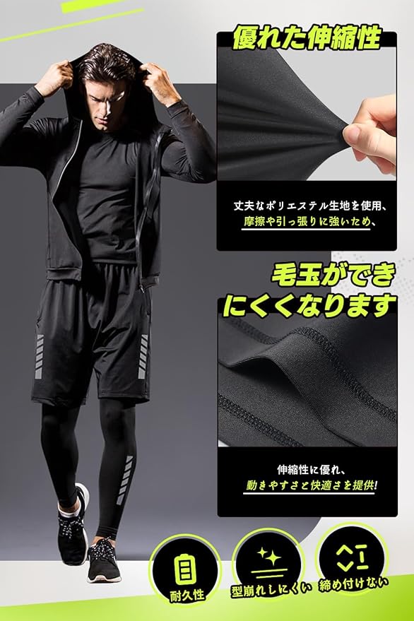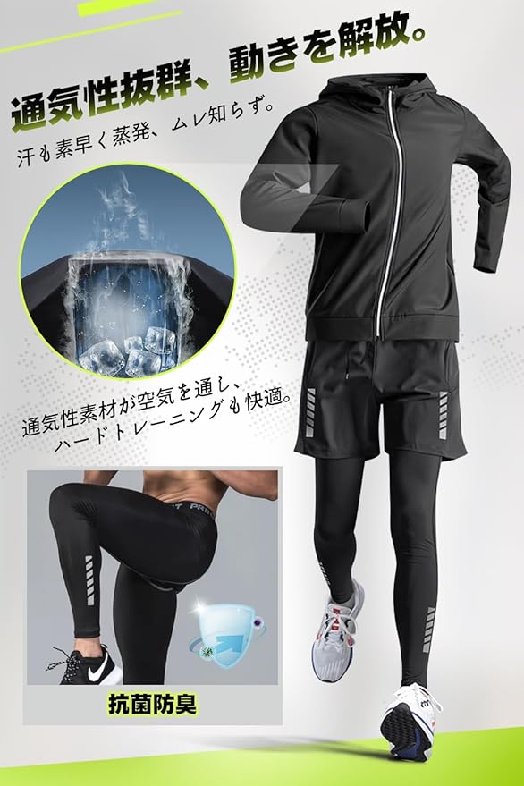 [ciciibear] スポーツウェア メンズ 上下セット ランニングウェア コンプレッションウェア 長袖 半袖 運動着 通気 吸汗速乾 サイクリング ウォーキング トレーニング 山登り | peaceFull store