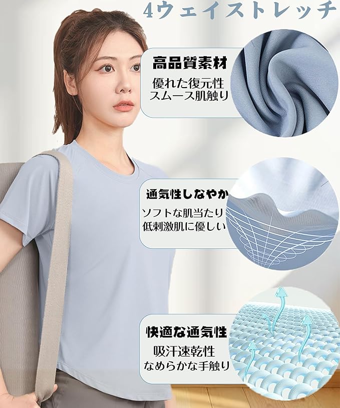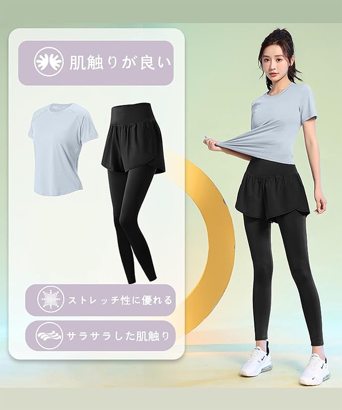 [Karsaer] ヨガウェア 上下セット レディース 体型カバー 半袖 Tシャツ ハイウエスト ヨガパンツ レギンス ダンス服 ジムウェア 快適な動き ストレッチ yoga A0063