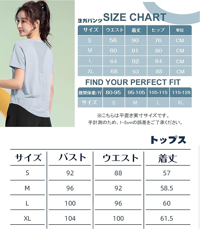 [Karsaer] ヨガウェア 上下セット レディース 体型カバー 半袖 Tシャツ ハイウエスト ヨガパンツ レギンス ピラティス トレーニング ジム スポーツウェア 吸汗速乾 伸縮通気A0063