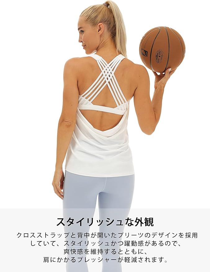 [icyzone] タンクトップ ヨガウェア トップス ノンワイヤー カップ付き 通気 速乾 キャミソール ランニング ワークアウト レディース