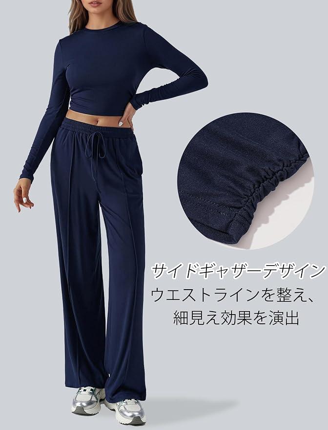 [Maeau] スポーツウェア レディース 上下セット ルームウェア ヨガ ジャージ へそ出し トップス 長袖 タイト ロングパンツ ゆったり 通気性 ストレッチ 体形カバー ス トレーニング ランニング 普段着 秋冬 | peaceFull store