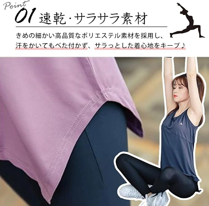 [Sokure] エアーをまとうエアリーヨガウェア フワっサラっアシンメトリー効果で美脚際立つ 上下セット ヨガウェアセット スポーツウェアセット