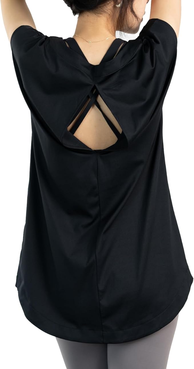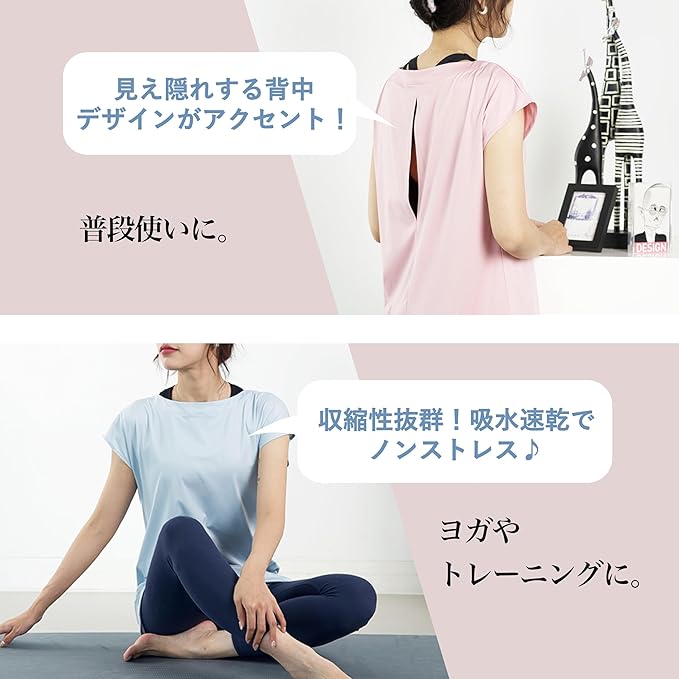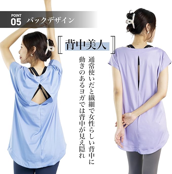 [iito.seasons] ヨガウェア レディース 美背中 背中開き ゆったり トップス 体型カバー 冷感シャツ ロング丈 丈長 半袖 スポーツ ルームウェア フィットネス トレーニング 吸汗速乾 UVカット 紫外線対策 薄手 夏 おしゃれ | peaceFull store