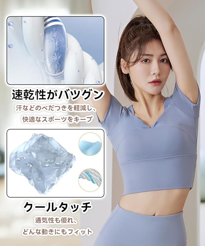 [Karsaer] ヨガウェア 上下セット レディース ピラティスウェア 半袖 スリムフィット ハイウエストヨガパンツ タイツ お腹引き締め ヨガウェア おしゃれ 通気・伸縮性 吸汗速乾 トレーニングウェア カップ付き レディース ジムウェア A0013 | peaceFull store