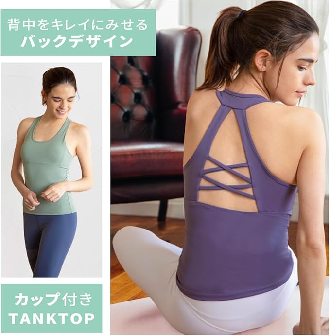 [VEROMAN] ヨガウェア トップス カップ付き タンクトップ ロング丈 ブラトップ レディース トレーニング ピラティス ppi-ttb034