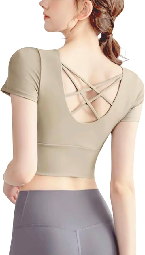 [VEROMAN] ヨガウェア カップ付き トップス 半袖 ショート丈 ppi-ssd041