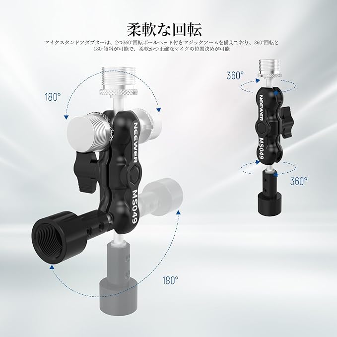 NEEWER マイクマウントアダプター ブームアームマイクスタンドクランプホルダー用 マイクアームアダプター 360 デュアルミニボールヘッドマジックアーム アルミ合金製 マイクスタンドアダプター 1/4"-5/8"ネジアダプター付き マイクアクセサリー 最大荷重900g MS049
