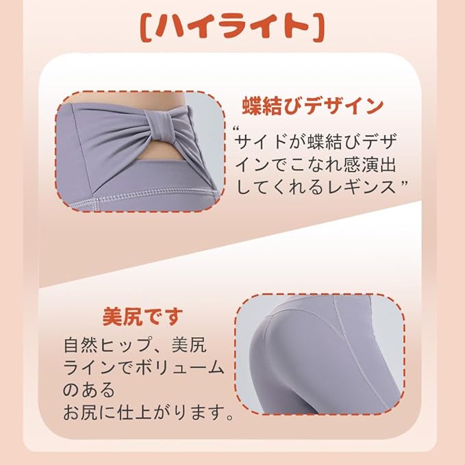 [Akihee] ヨガパンツ レディース ハイウエスト 吸汗速乾 蝶結び おしゃれ かわいい 通気性 伸縮性 トレーニング ハイサポート 快適な動き ジムウェア 着痩せ 美尻 美脚