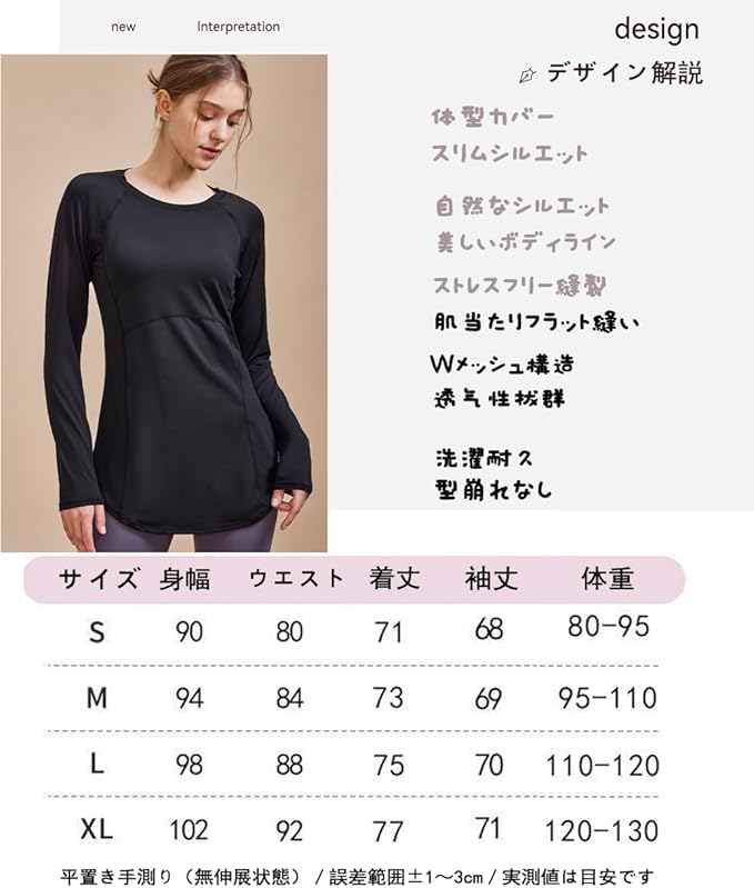 [Karsaer] ヨガウェア トップス スポーツTシャツ レディース 長袖 体形カバー スポーツ UVカット 伸縮性 ロング丈 ピラティス ジム トレーニング ランニング 吸汗速乾A0060 | peaceFull store