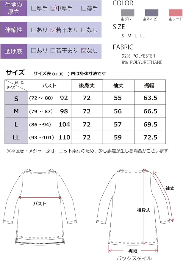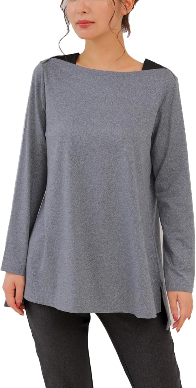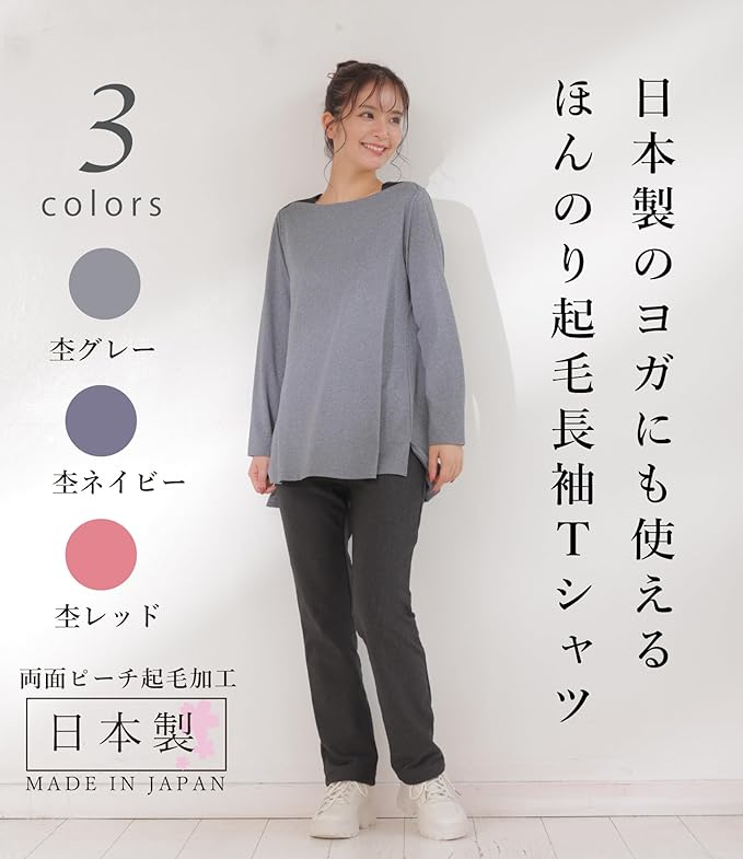 [egneL] エグネル トップス 日本製 長袖 表起毛 ストレッチ 伸縮性 ヨガ ジム サイドスリット ピーチ起毛 レディース 秋 冬 春
