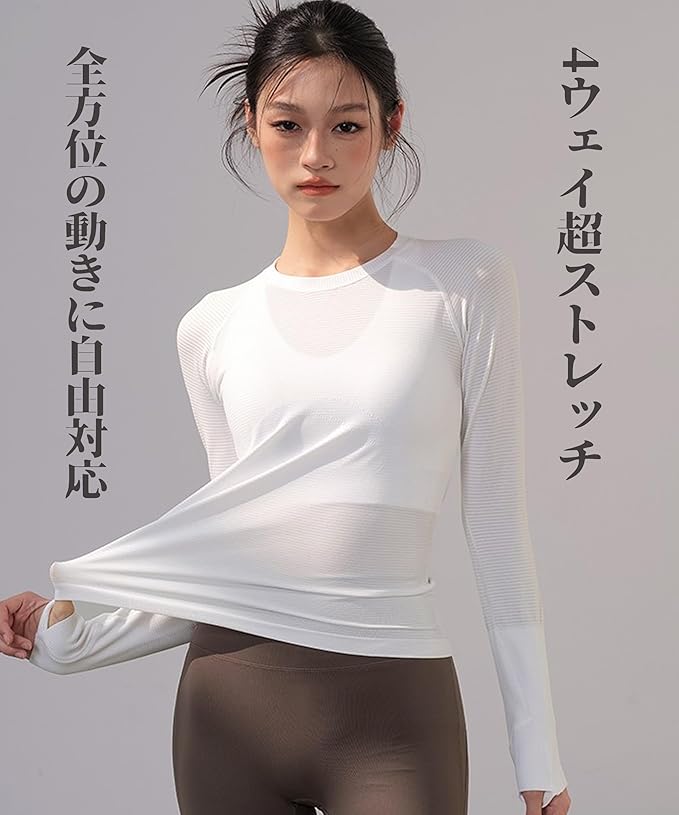 [Karsaer] スポーツインナー レディース 長袖 吸汗速乾 ヨガウェア ストレッチ 体型カバー トップス スポーツロングtシャツ Tシャツ ヨガ トレーニング ジムウェア 春秋冬A0065 | peaceFull store