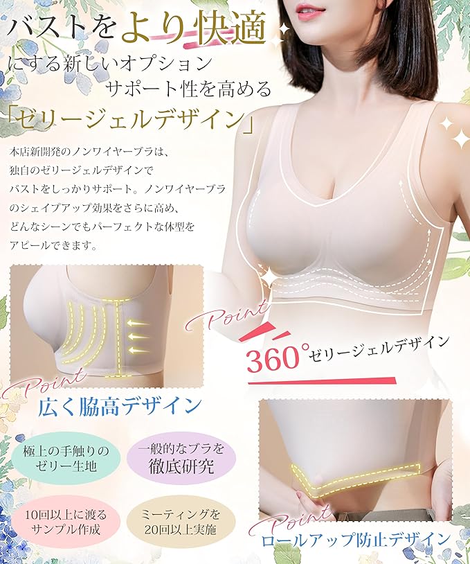 [Tophana] 【最新ゼリージェル設計】ノンワイヤーブラ シームレスブラ 【サポート力バツグン・驚きのラクのびフィット感】 ノンワイヤー ブラジャー スポーツブラ ナイトブラ 寄せブラ バストアップ 脇高設計 締め付け感ゼロ 通気性 垂れない