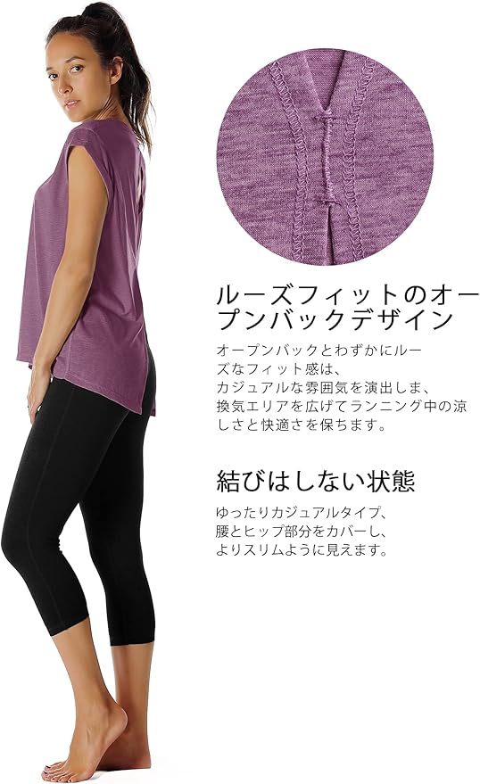 [icyzone] ヨガウェア レディース Tシャツ スポーツウェア ルーズフィット オープン バック 半袖 通気 カジュアル フィットネス アスレチック 大きいサイズ | peaceFull store