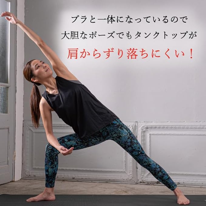 [アツギ] [クリアビューティアクティブ] ヨガ レイヤード カップ付きタンクトップ 重ね着風 47043