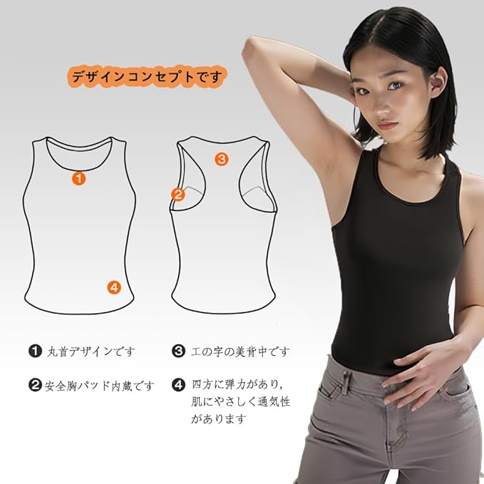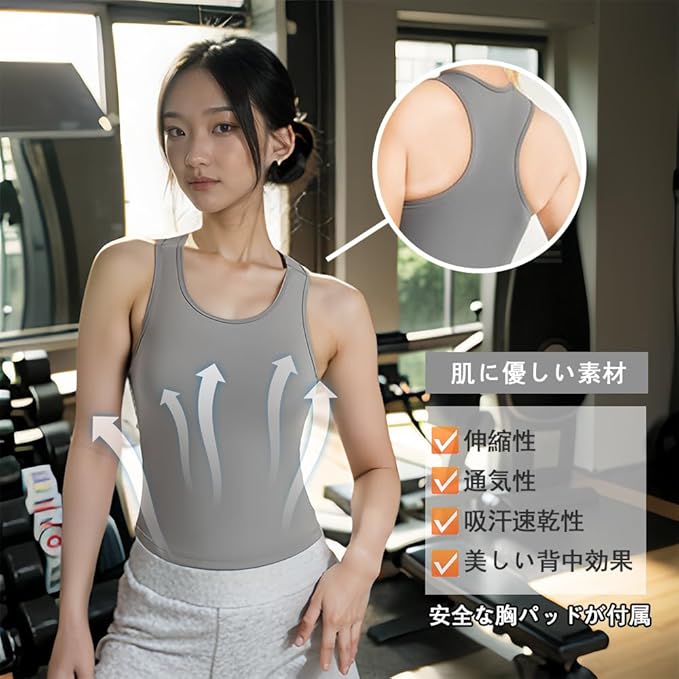 [Siomlana] ホットヨガ インナーシャツ カップ付きタンクトップ タンクトップ レディース Tシャツ トップス ヨガ ブラトップ スポーツキャミソール ラウンドネック さらさら 吸汗速乾 | peaceFull store