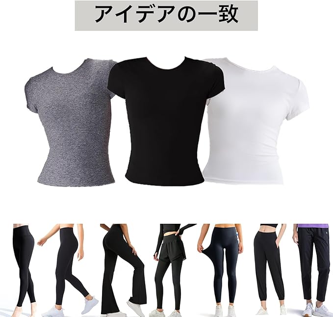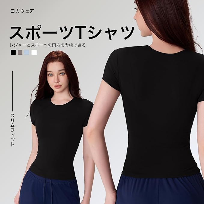 [IRCOLVE] ヨガウェア トップス スポーツシャツ 半袖 スリムフィット Tシャツ レディース スリムフィット ヨガtシャツ UVカット 冷感 伸縮性 吸汗速乾