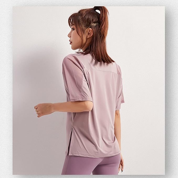 [優億] スポーツシャツ ヨガウェア ゆったり トップス レディース 体型カバー Tシャツ メッシュ トレーニングウェア 半袖 スリット トップス ストレッチ 速乾 薄手 夏 ヨガウェア 冷感速乾 | peaceFull store