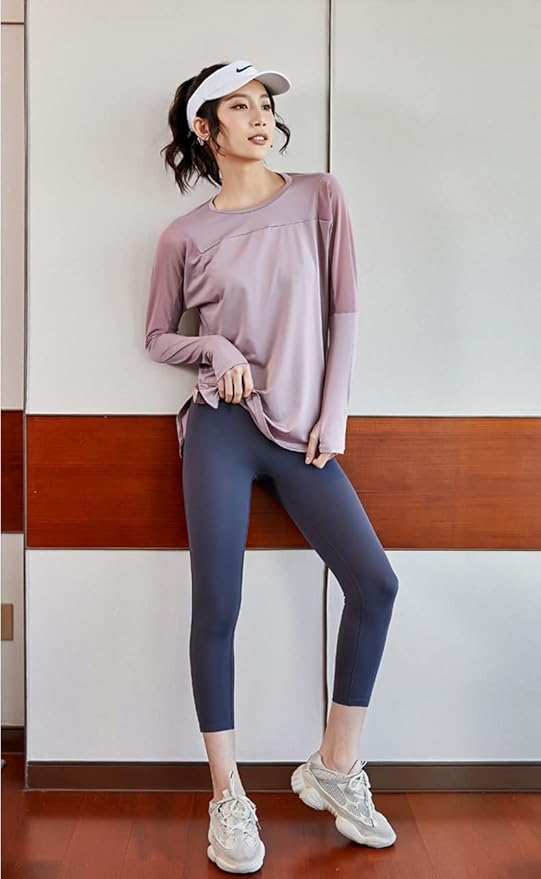 [優億] スポーツシャツ 長袖 ヨガウェア レディース 体型カバー Tシャツ メッシュ トレーニングウェア スリット トップス ストレッチ メッシュ 伸縮 速乾 ヨガウェア 【サラッとした肌触り】スポーツウェア | peaceFull store