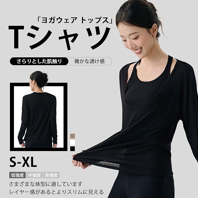 [IRCOLVE] スポーツウェア Tシャツ レディース ゆったりした長袖 ヨガウェア トップス 春秋 ランニング ピラティス ジム 透け感 速乾 体型カバー