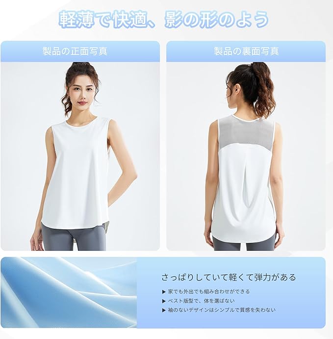 [YbiOK] ノースリーブ レディース タンクトップ – ヨガウェアとして最適な快適性とスタイル 伸縮性のあるメッシュ速乾フィットネストレーニングボディシェーピング