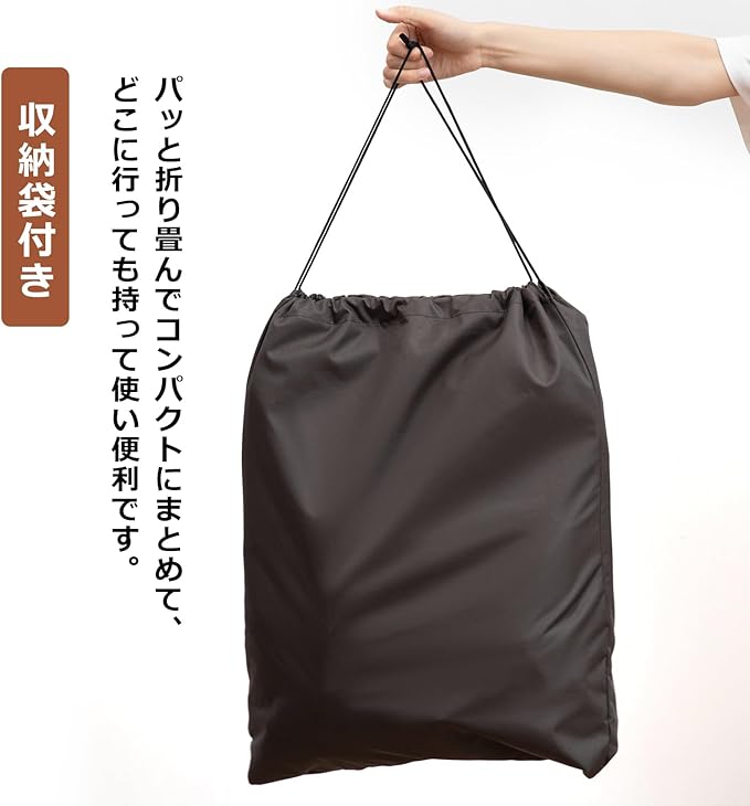 【携帯に便利なコンパクト収納】お出かけ先へ気軽に持ち運べる、専用の収納袋が付属しています。使用後は簡単に折り畳むことができ、小さなサイズにコンパクトにまとまります。この収納袋に入れれば、ベビーカーの荷台やママバッグなど、限られたスペースにもすっきりと収納可能。突然の雨や強い日差しにも、いつでもさっと取り出してすぐに使用できる、高い携帯性が魅力です。