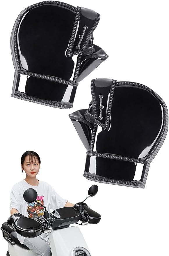 [ティアニーズ]バイクグローブ ハンドルカバー 自転車ハンドルカバー 防寒 防水 防風 対策 スクーター 自転車 PUレザー製 (黒)