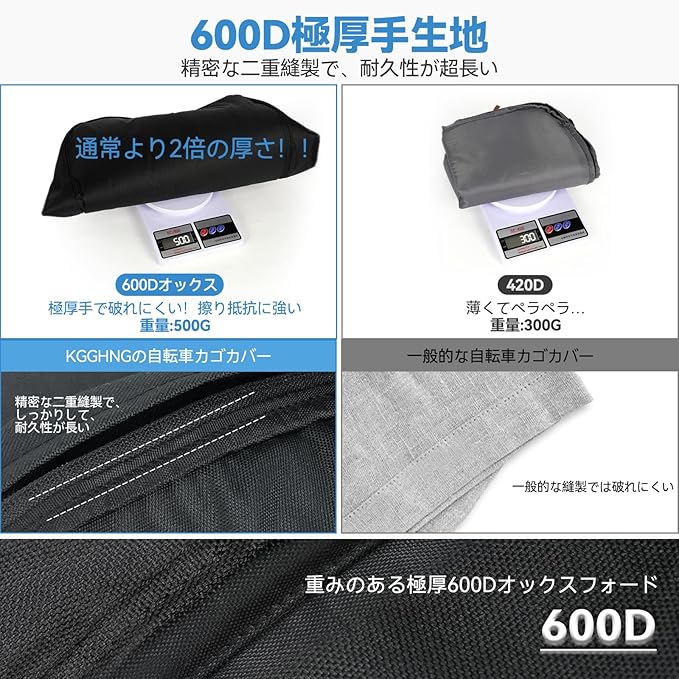 よりよく耐久性:①この自転車カゴカバー 前は極厚手600D生地を採用して、より密で重く、より良い耐摩耗性を持っている。駐輪場で自転車が転倒したり、自転車同士がぶつかり合いたり、自転車が壁に擦れたりして、製品が破れにくい。さらに強度が強く、アウトドアの様々な極端な天候に適し、耐候性も優れています。②ファスナーと継手部分には、ダブルステッチ加工が施されています。しっかりして、丈夫で耐久性に優れている
