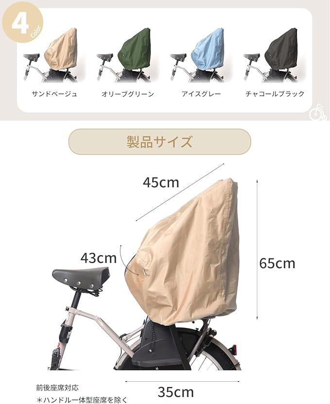 BICYCOVER バイシカバー 自転車子供座席カバー チャイルドシート 保護カバー 撥水 防水 後座席 前座席 共用 (チャコールグレー)