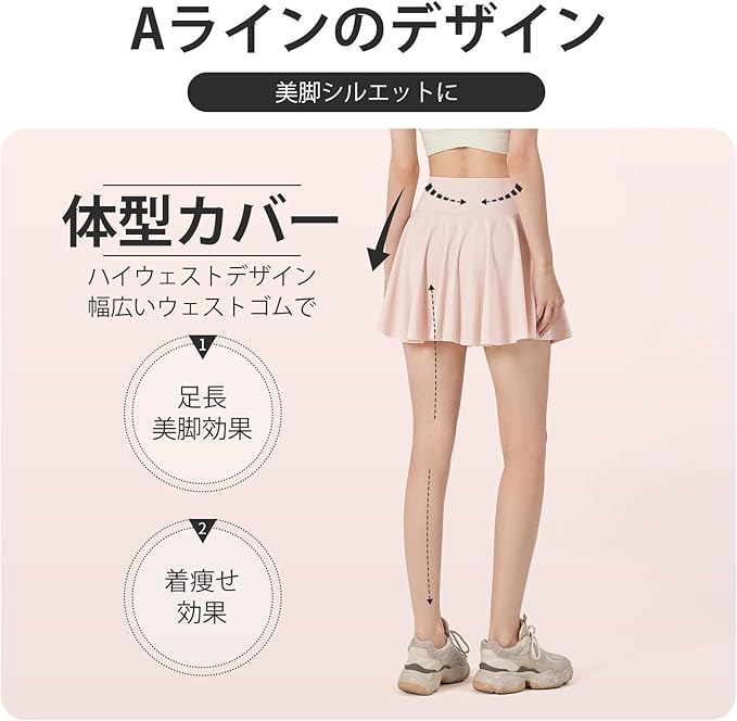 [MORGEN SKY] スカート スポーツ レディース スコート Aライン ミニスカート インナー付き UPF50+ テニス ゴルフ ジム ヨガ 夏 体型カバー UVカット 通気 速乾 フィットネス ランニング YQ220 | peaceFull store