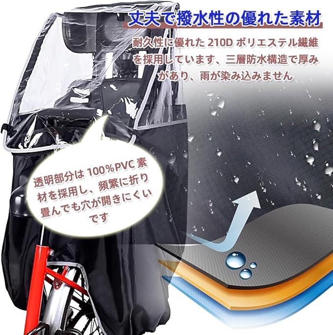 【高耐久性で防水性抜群】本レインカバーは、耐久性に優れた210Dナイロンを使用し、耐水性も抜群です。雨天でも内部に水が染み込むことなく、お子様をしっかり守ります。